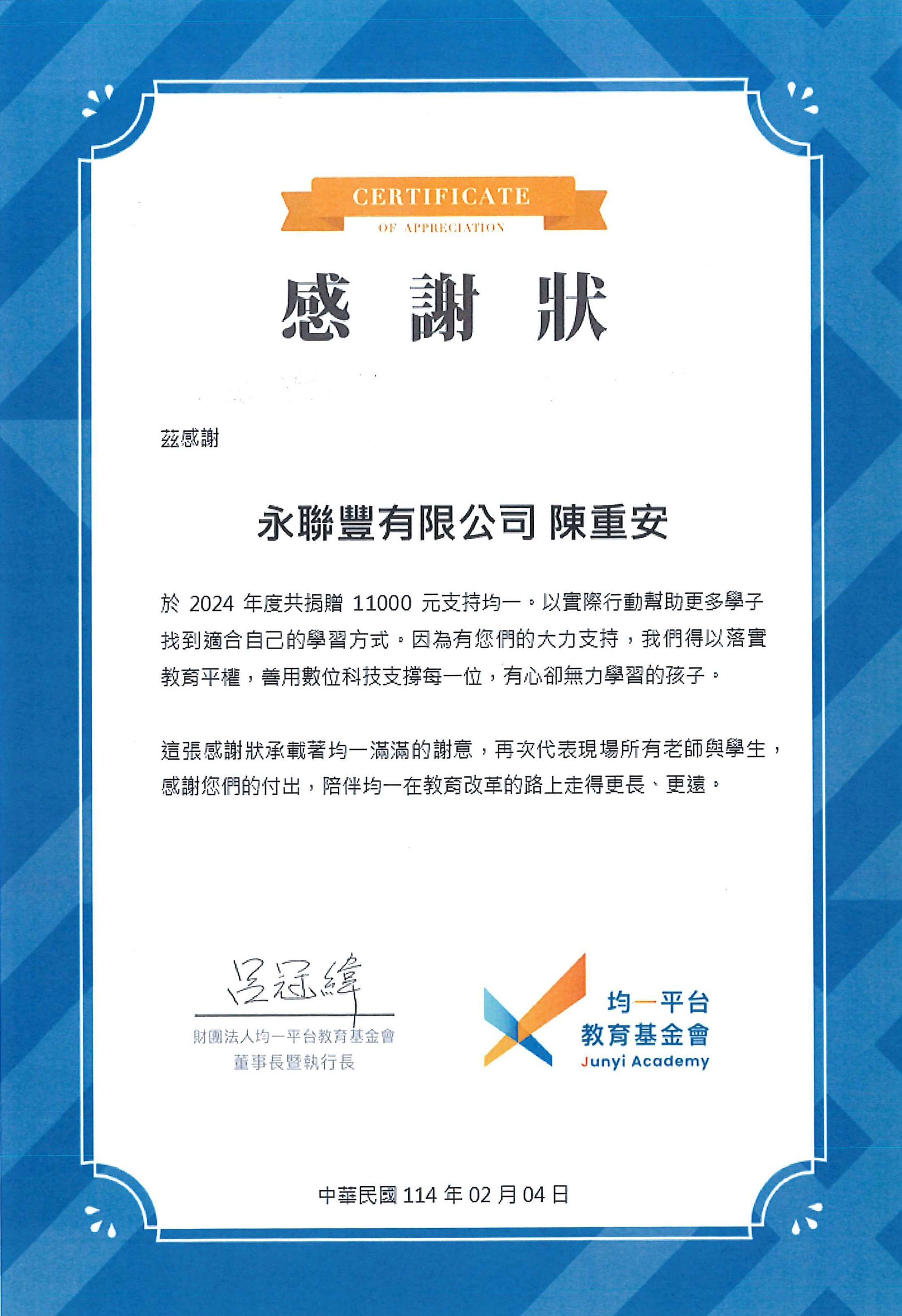 做一個有企業社會責任的公司,取之社會,用之社會。